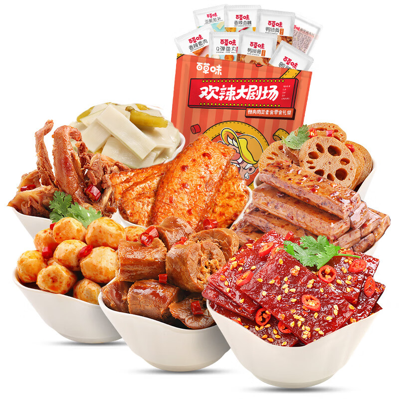 百草味 欢辣大剧场445g 鸭脖零食小吃网休闲食品麻辣夜宵4284件已付款抢! -