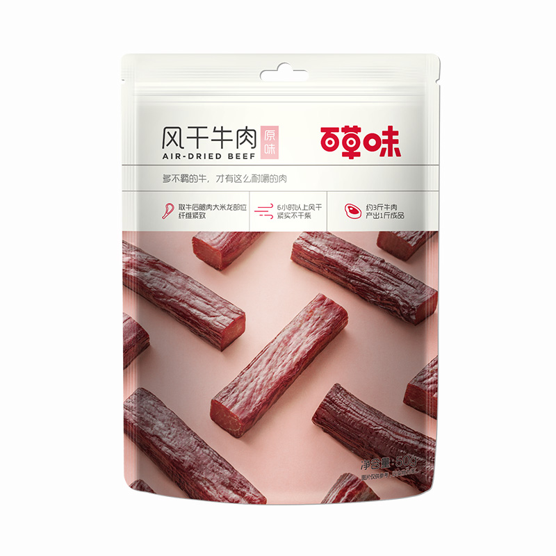 百草味 内蒙古特产零食原味手撕牛肉干肉脯牛肉条休闲小吃 风干牛肉50g/袋4578件已付款抢! -