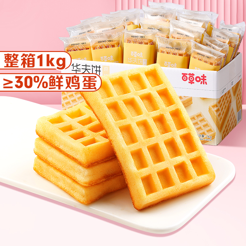 百草味 网红小零食手撕面包整箱办公室早餐饼干蛋糕软面包家庭装代餐 华夫饼1000g/箱9093件已付款抢! -