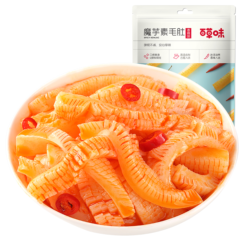 百草味 魔芋素毛肚180g 魔芋爽素食素肉小零食特产怀旧小吃下酒菜 MJ 香辣味2253件已付款抢! -