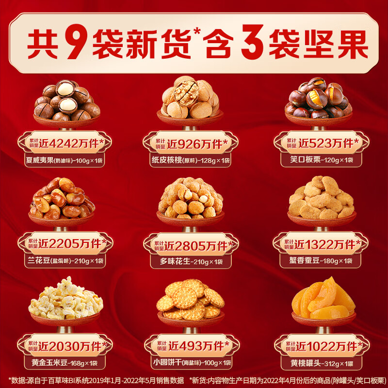 百草味 品质坚果礼盒1528g 夏威夷果核桃每日坚果混合干果休闲零食送礼随机发8263件已付款抢!