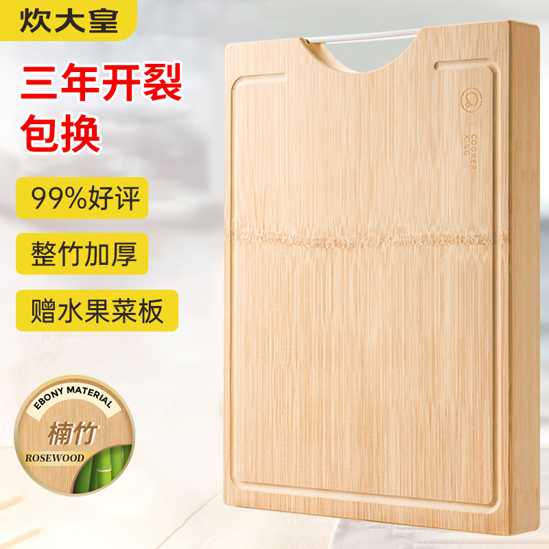 炊大皇 3cm加厚 整竹砧板 不易开裂切菜板 无漆无蜡可悬挂案板 可砍骨剁肉 40*30*3cm9952件已付款抢! -