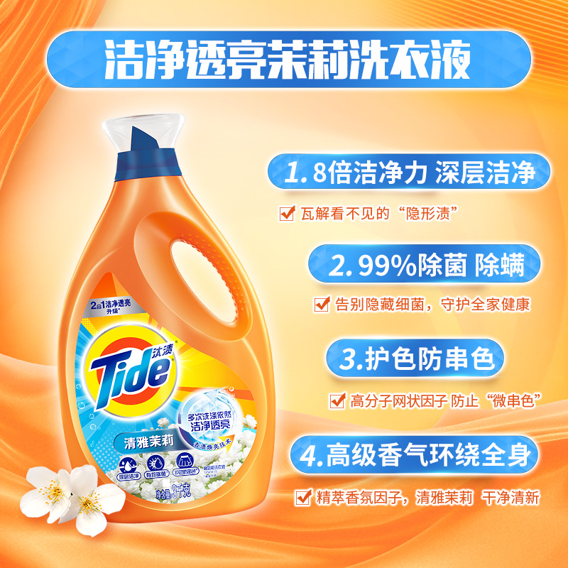 汰渍洁净透亮除菌除螨持久留香清雅茉莉香氛洗衣液6斤6068件已付款抢! -