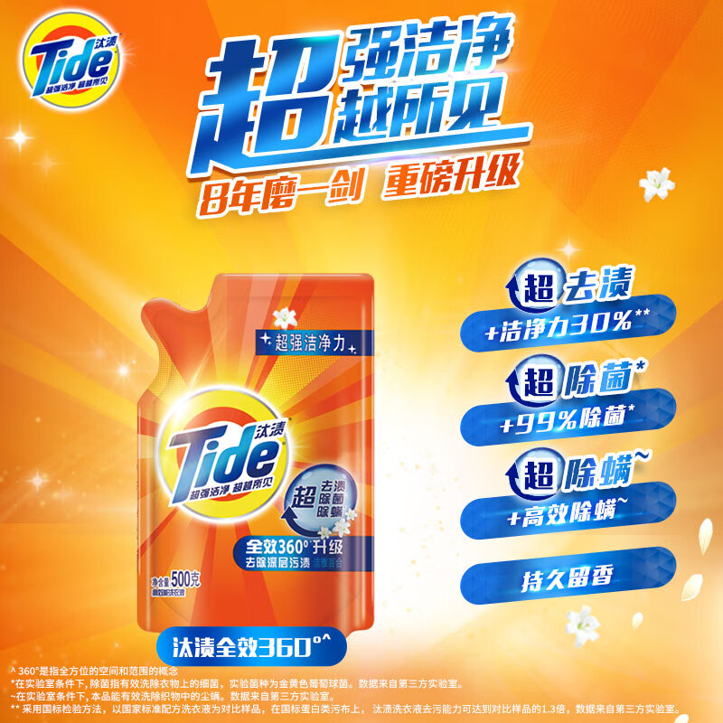 汰渍全效洁净超去渍超除菌超除螨持久留香洁雅百合洗衣液3斤500G*3袋补充装袋装6664件已付款抢! -