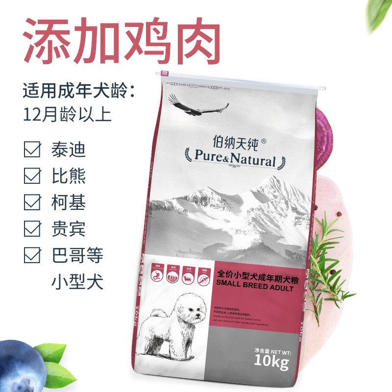 伯纳天纯 (Pure&Natural)宠物狗粮小型犬成年犬健胃促吸收犬粮10kg口感升级比熊4835件已付款抢!