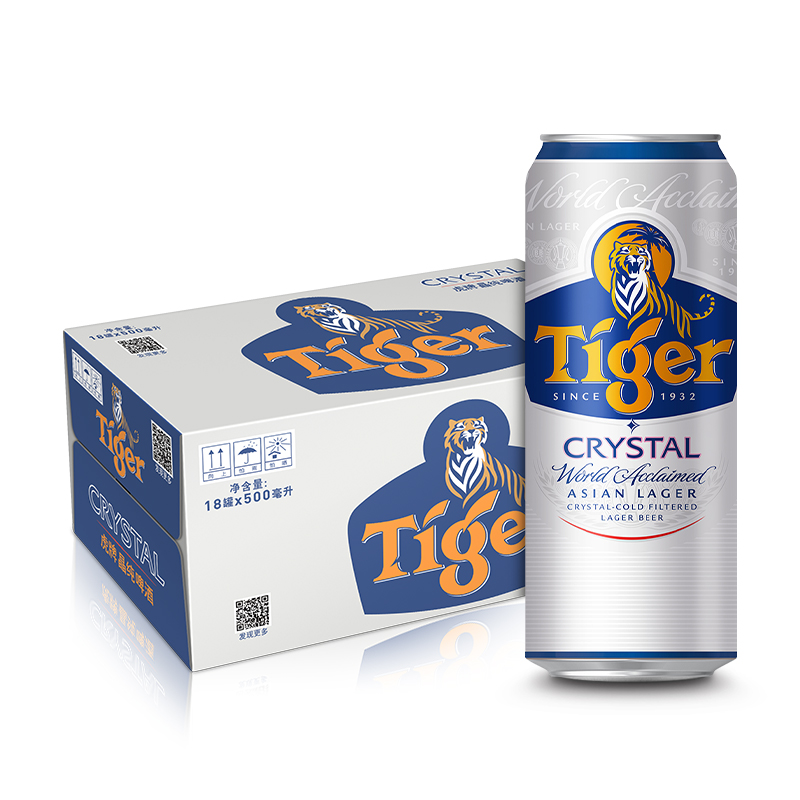 虎牌啤酒(Tiger)晶纯 500ml*18听整箱装(喜力旗下品牌)8985件已付款抢! -