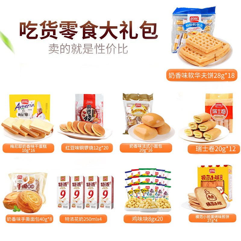 【神券300 减210】盼盼 糕点零食大礼包 圣诞送礼物女友猪饲料休闲零食干蛋糕蛋黄派铜锣烧 豪华版1081件已付款抢! -