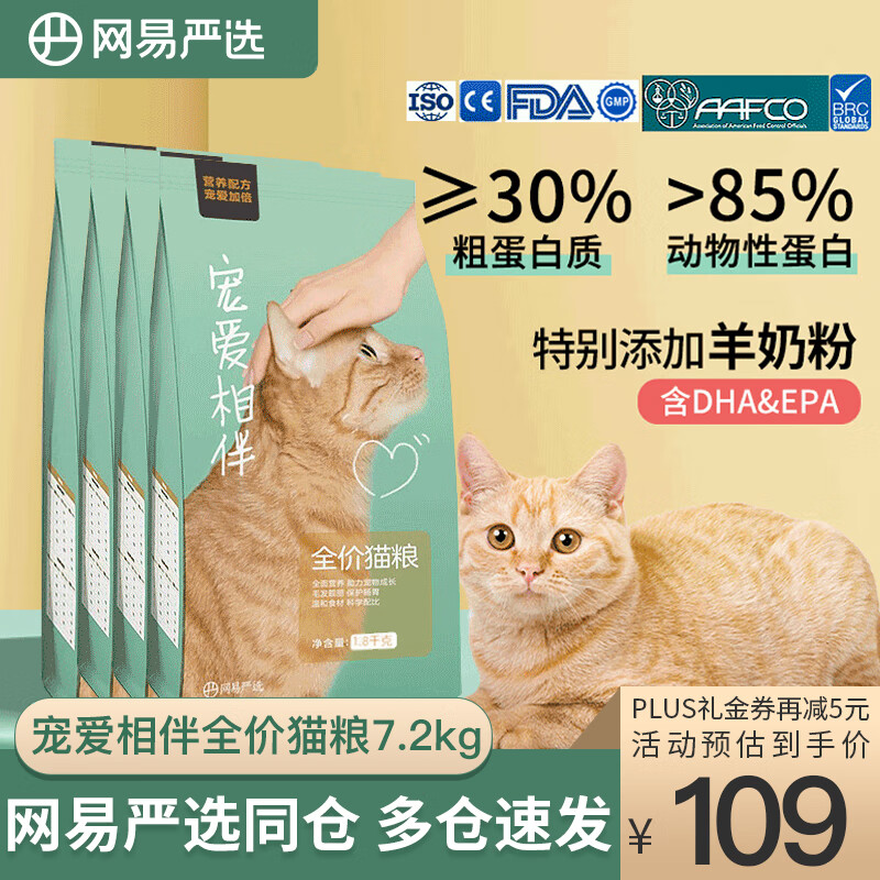 网易严选 宠爱相伴全阶段猫粮 优质蛋白质 增加体质 公益猫粮 通用 | 公益猫粮 7.2kg8547件已付款抢! -