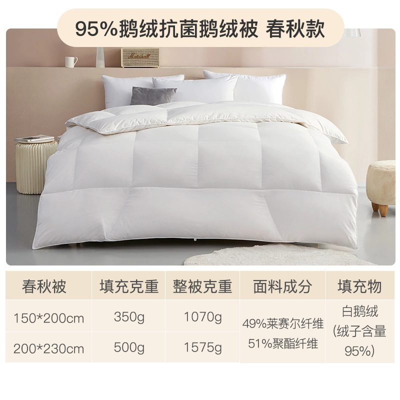 【推荐】网易严选 95%白鹅绒被957羽绒被羽毛被春秋被 A类抗菌静音不跑绒 被芯被子加厚婴幼儿安全 【A类科技分区抗菌】白色 春秋被 95%白鹅绒 150*200cm 适合1.2米床8009件已付款抢! -