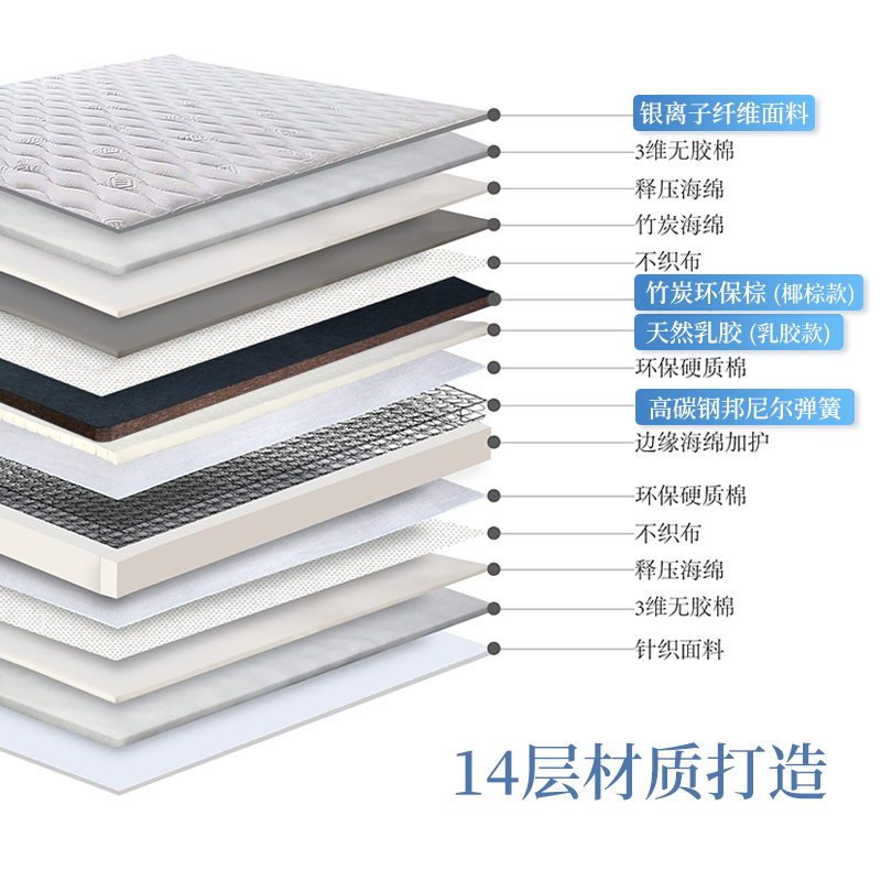 网易严选 3D椰棕弹簧乳胶床垫 邦尼尔整网弹簧床垫 席梦思床垫 偏硬睡感 椰棕款150*200cm2783件已付款抢! -