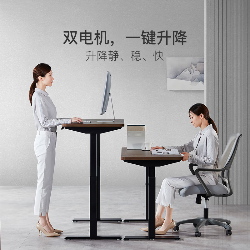 网易严选 有度电动升降桌电脑桌 站立办公升降台办公室书房桌子 坐站交替健康办公 【双电机】胡桃色*140*70cm5321件已付款抢! -