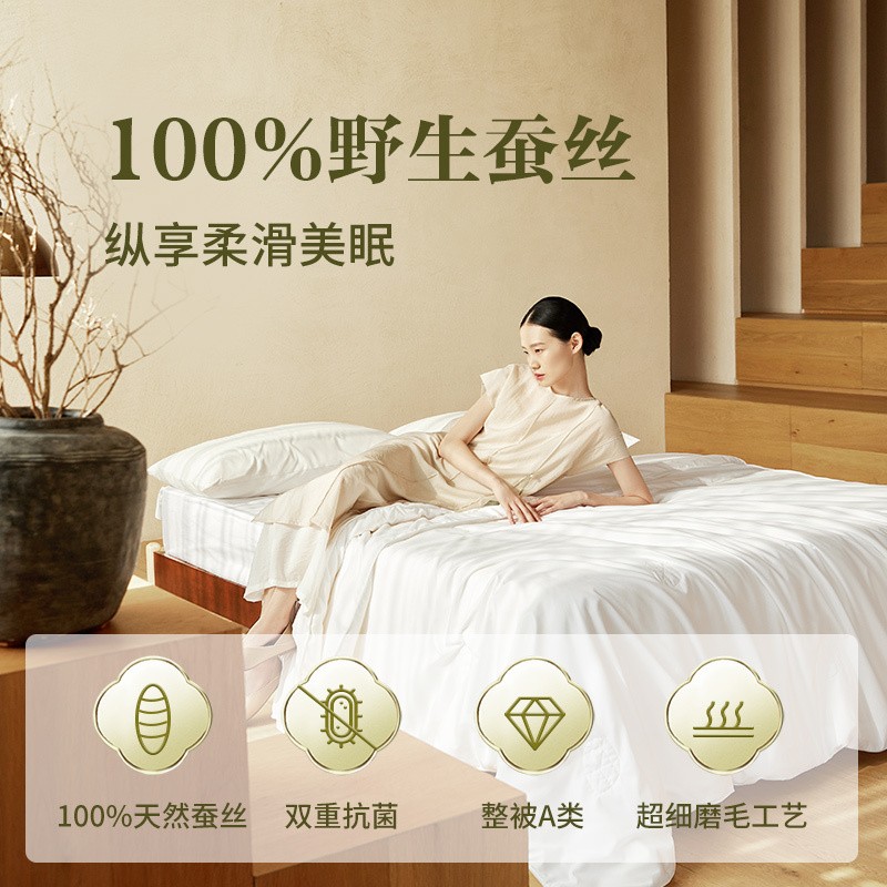 网易严选 100%野生蚕丝被 A类双重抗菌 超细磨毛柔滑软糯 四季春秋被被子空调被夏凉子母被二合一 【升级款】春秋被 150*200cm(适合1.2m床)7480件已付款抢! -