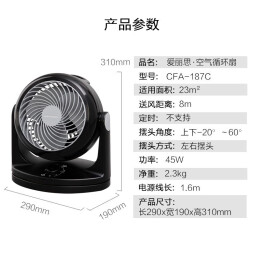 爱丽思(IRIS) 爱丽思空气循环扇桌面风扇节能电风扇空调扇落地扇电扇iris小风扇 CFA-187C黑色 左右自动摇【三档 45W 】8462件已付款抢! -