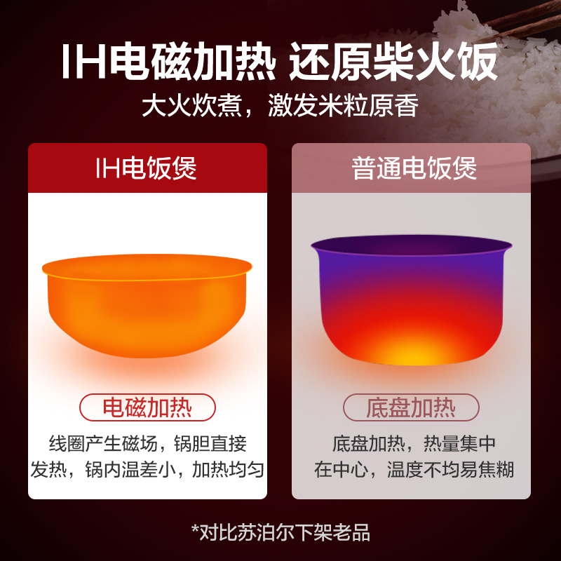 苏泊尔(SUPOR)电饭煲 电饭锅4L IH电磁加热 铜晶本釜3-8人米种口感都可选 家用智能多功能电饭煲SF40HC439514件已付款抢! -