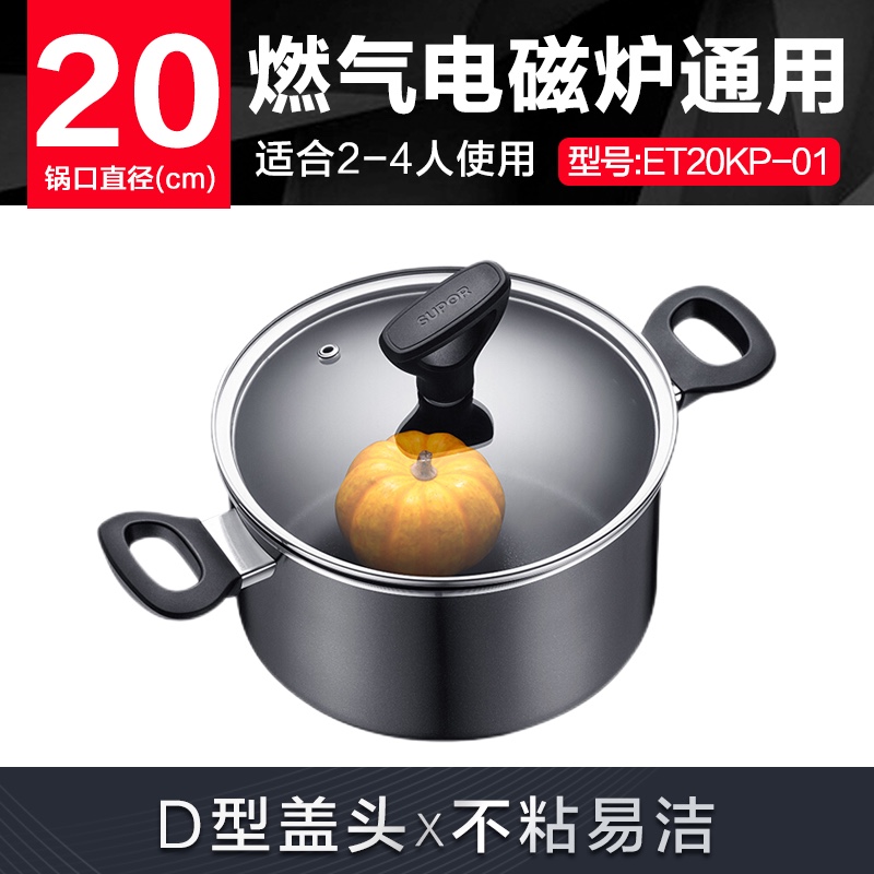 苏泊尔SUPOR不粘汤锅D系列电磁炉燃气通用黑色20cm奶锅炖锅汤煲ET20KP-015927件已付款抢! -