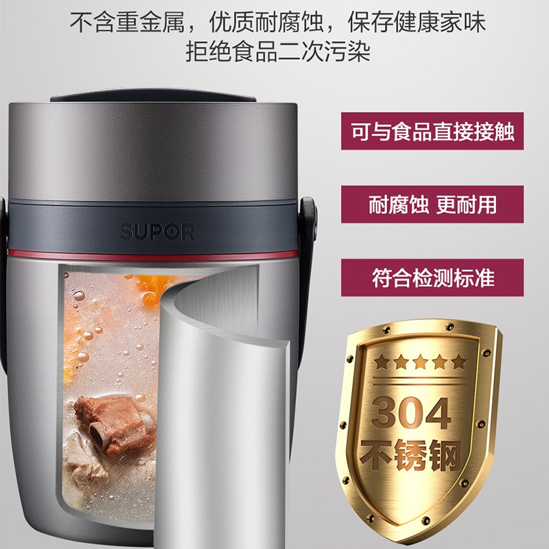 苏泊尔(SUPOR)保温饭盒汤盒304不锈钢3层保温桶1.7L成人儿童学生便当盒提锅 深邃灰2.0L1269件已付款抢! -