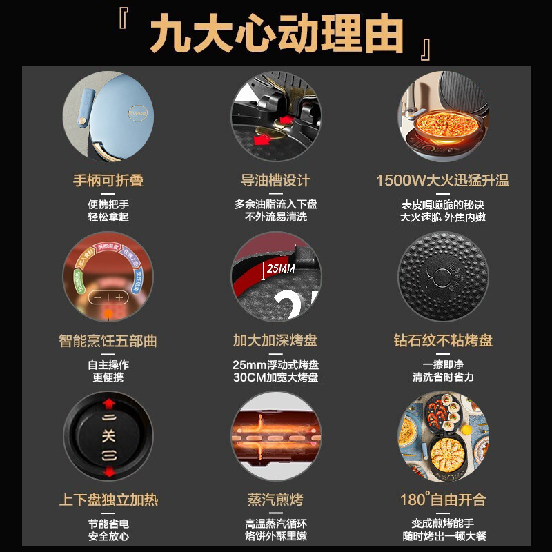 苏泊尔(SUPOR) 电饼铛家用电饼档上下盘可拆洗双面加热加大加深烤盘大尺寸高温蒸汽煎烤机早餐机煎饼 JD32RQ8627914件已付款抢! -