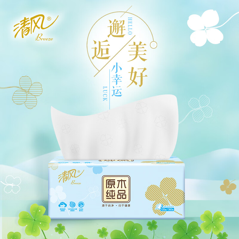 清风 (APP) 抽纸 幸运草系列 纸巾 抽纸 湿水不易破 纸巾3层120抽24包(整箱销售 新老包装随机发货)2546件已付款抢! -