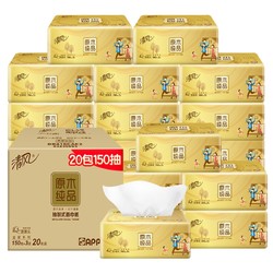 清风 抽纸 纸巾 面巾纸 原木纯品金装系列 3层150抽纸巾*20包 小规格( 整箱销售 新老包装交替发货)9575件已付款抢! -