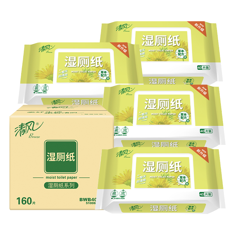 清风(APP) 湿厕纸 40片*4包私处清洁湿巾(整箱销售)(新老包装交替发货)4054件已付款抢! -