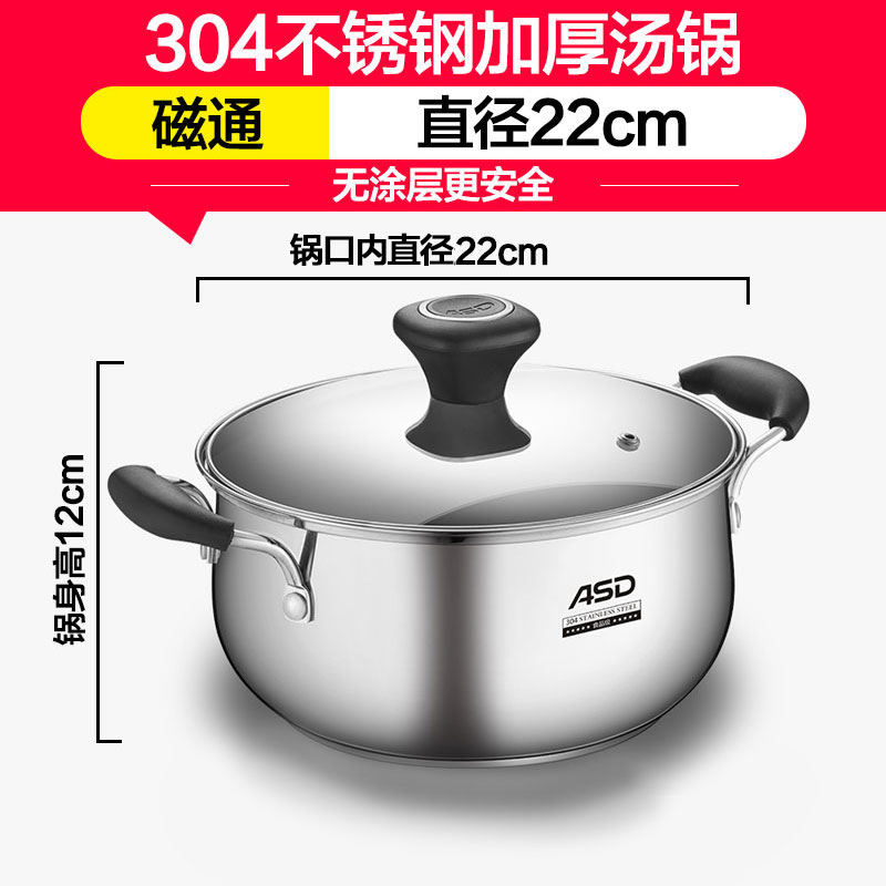 爱仕达 ASD 汤锅304不锈钢锅煮锅22CM复底明火燃气电磁炉通用奶锅TS22B1WG7709件已付款抢! -