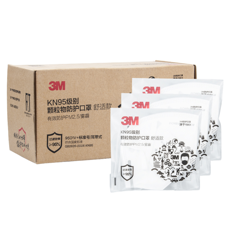 3m口罩防风防飞沫防工业粉尘防PM2.5口罩男女通用KN95级成人口鼻防花粉n95口罩 3M9501V+【有阀,15只/盒送防勒调节器】8132件已付款抢! -