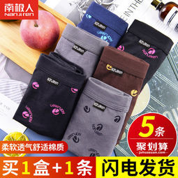 Nan ji ren 南极人 NQ22061 男士平角内裤 五条礼盒装19.9元9549件已付款抢! -