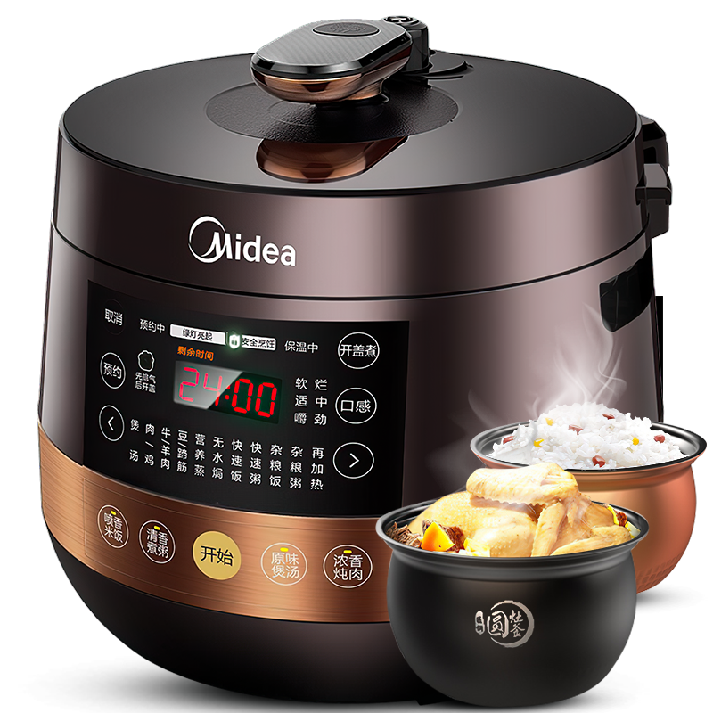 美的(Midea)智能家用大容量电压力锅5 多功能不粘双胆 开盖收汁一键排气 高压锅YL50Easy203(3-6人食用)4241件已付款抢! -