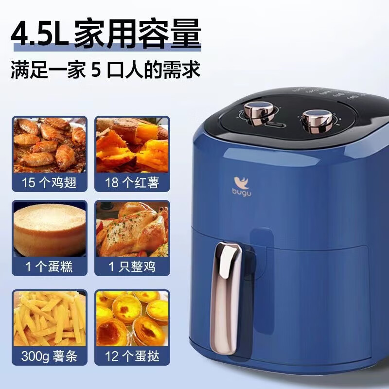 美的 集团 (Midea)布谷 空气炸锅4.5L大容量家用智能定时多功能无油烟电炸锅不沾低脂煎 【蓝色】机械款1547件已付款抢! -