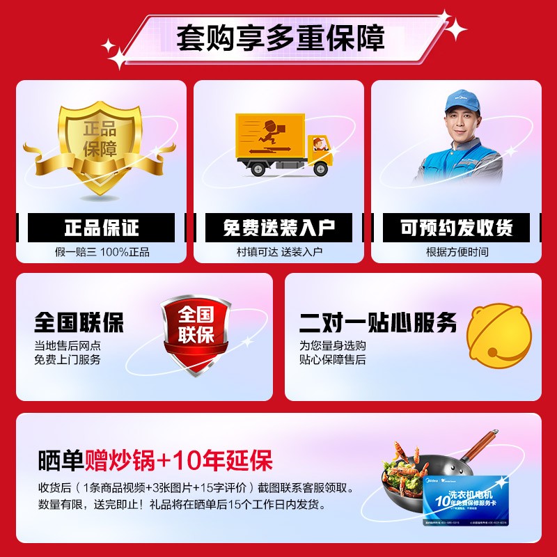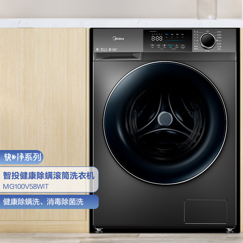 美的(Midea)滚筒洗衣机全自动10公斤变频 感应式净螨除菌 智能投放 快净系列 MG100V58WIT 以旧换新9217件已付款抢! -