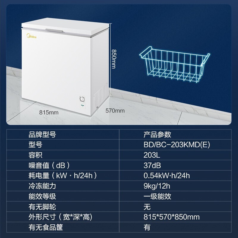 美的(Midea)203升冷藏冷冻转换冰柜家商用大冷柜一级能效节能卧式囤货小冷柜203KMD(E)9173件已付款抢! -