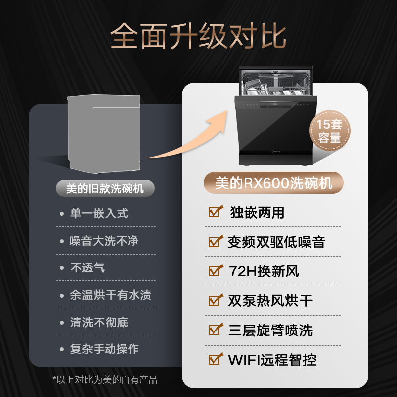 美的(Midea)15套大容量 嵌入式 骄阳家用洗碗机 热风烘干 银离子净味 双驱变频 京东小家智能生态 RX6007242件已付款抢! -