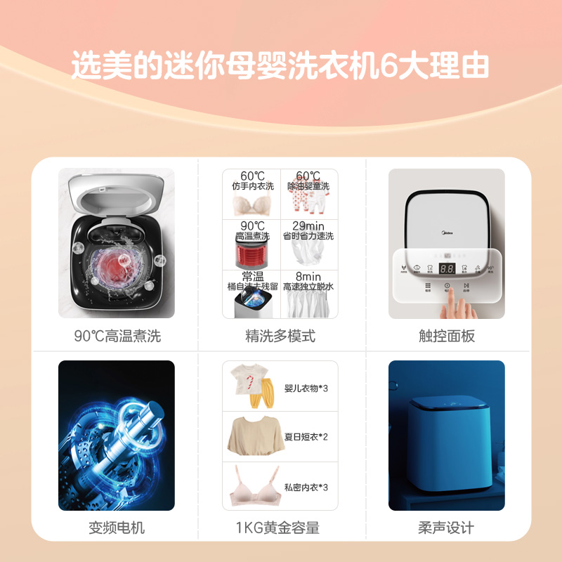 美的(Midea)内衣内裤迷你洗衣机 小型母婴儿童袜子专洗 高温蒸煮去污除菌1公斤波轮全自动 MX-TSBLW016488件已付款抢! -