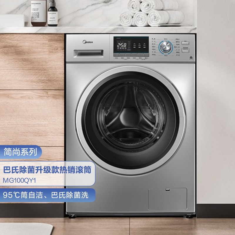 美的(Midea)滚筒洗衣机全自动 10公斤大容量 巴氏除菌洗 专业羽绒服洗 BLDC变频电机 MG100QY1 以旧换新8722件已付款抢! -