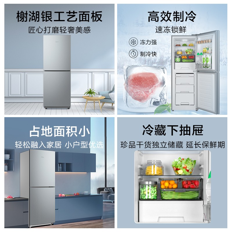 美的(Midea)176升双门迷你小冰箱小型家用宿舍租房用冷藏冷冻电冰箱 BCD-176CM 榭湖银3022件已付款抢! -