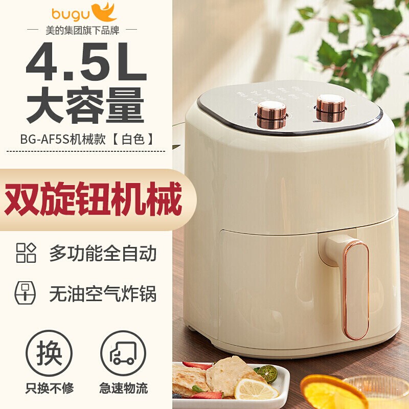 美的 集团 (Midea) 布谷空气炸锅 4.5L大容量家用智能炸锅 不粘易清洁多功能电炸锅 【白色】机械款9416件已付款抢! -