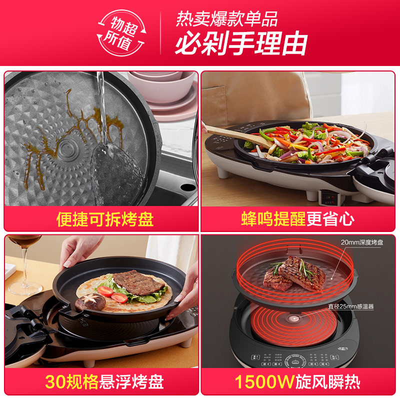 美的(Midea)电饼铛家用智能恒温下盘可拆煎烤机煎饼铛三明治机早餐机MC-JK30Power3019526件已付款抢! -