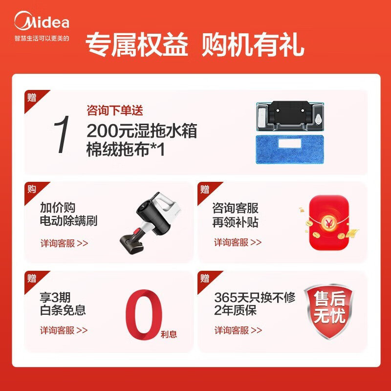 美的 (Midea)吸尘器无线手持家用毛发不缠绕大吸力小型吸擦拖地一体拖地机车载吸猫毛 19Kpa吸力极地白Q37103件已付款抢! -