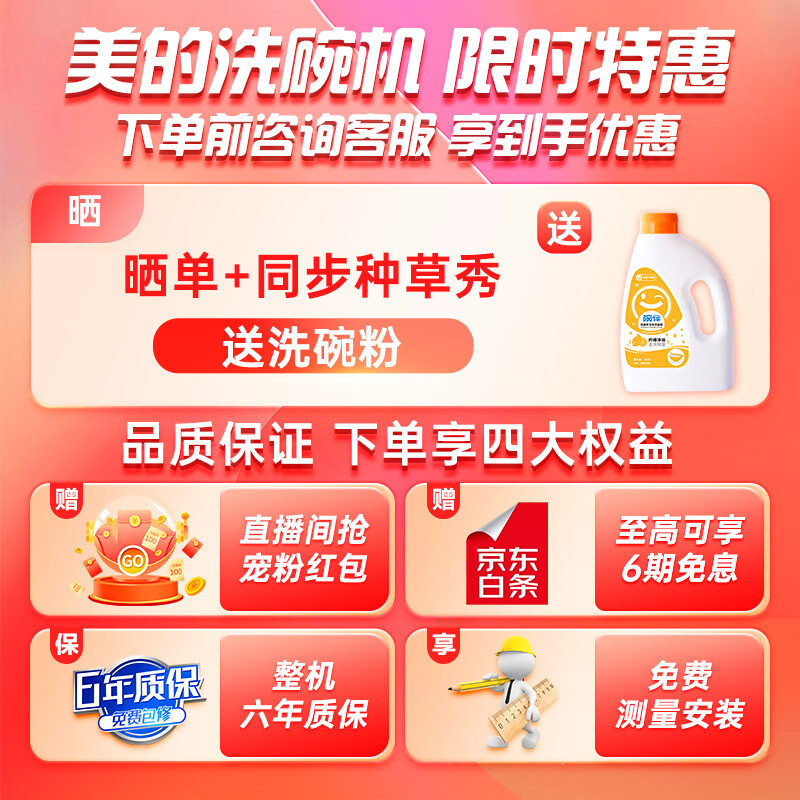 美的(Midea)家用8套台式免安装嵌入式全自动洗碗机 UV紫外线消毒除菌W3802H智能家电刷碗机 家电 厨房1420件已付款抢! -
