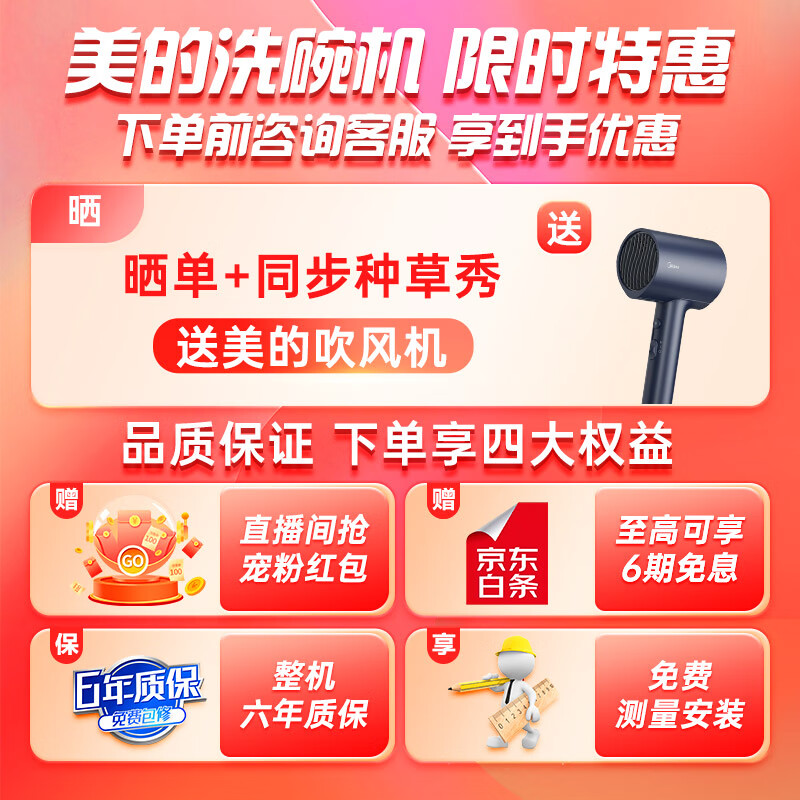 美的(Midea)洗碗机家用 15套独立式嵌入式双驱变频1/2分层洗二星消毒刷碗机极光系列M60 家电 厨房2176件已付款抢! -