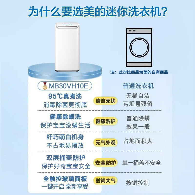 美的(Midea)波轮洗衣机全自动 3公斤迷你洗衣机小 儿童洗衣机 婴儿洗衣机 内衣洗衣机 高温煮洗MB30VH10E2486件已付款抢! -
