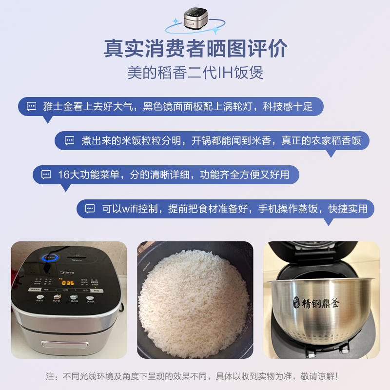 美的(Midea)风动稻香系列2代 IH智能电饭煲电饭锅家用4L健康养生彩屏WIFI智控蒸米饭锅HS407(3-8人)5788件已付款抢! -