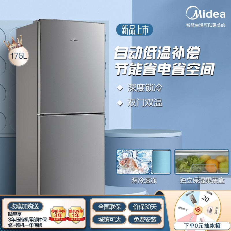 美的(Midea)176升小型两门双开门二门家用小电冰箱自动低温补偿节能低音持久锁冷BCD-176M 银色3195件已付款抢! -