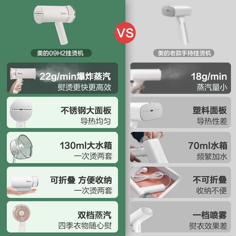美的(Midea)挂烫机 手持挂烫机家用电熨斗 蒸汽挂烫机可折叠 除菌双档熨烫机YBD09H27843件已付款抢! -