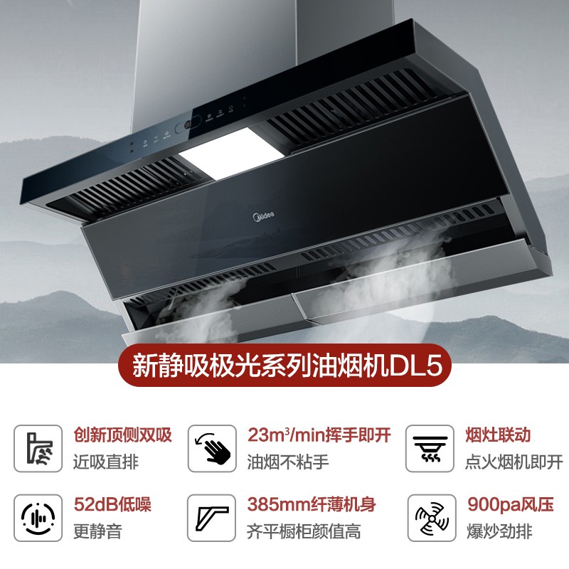 美的抽油烟机燃气灶套装家用烟灶联动智控顶侧双吸23风量变频烟感超薄吸油烟机旧换新DL5套装天然气5907件已付款抢! -