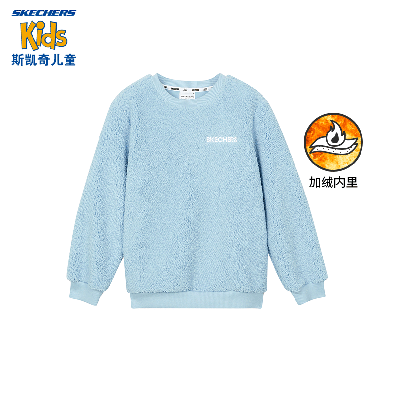 Skechers斯凯奇童装秋冬男童卫衣年新款羊羔绒套头上衣儿童加绒卫衣L321K150 空气蓝/01CQ 110cm5924件已付款抢! -