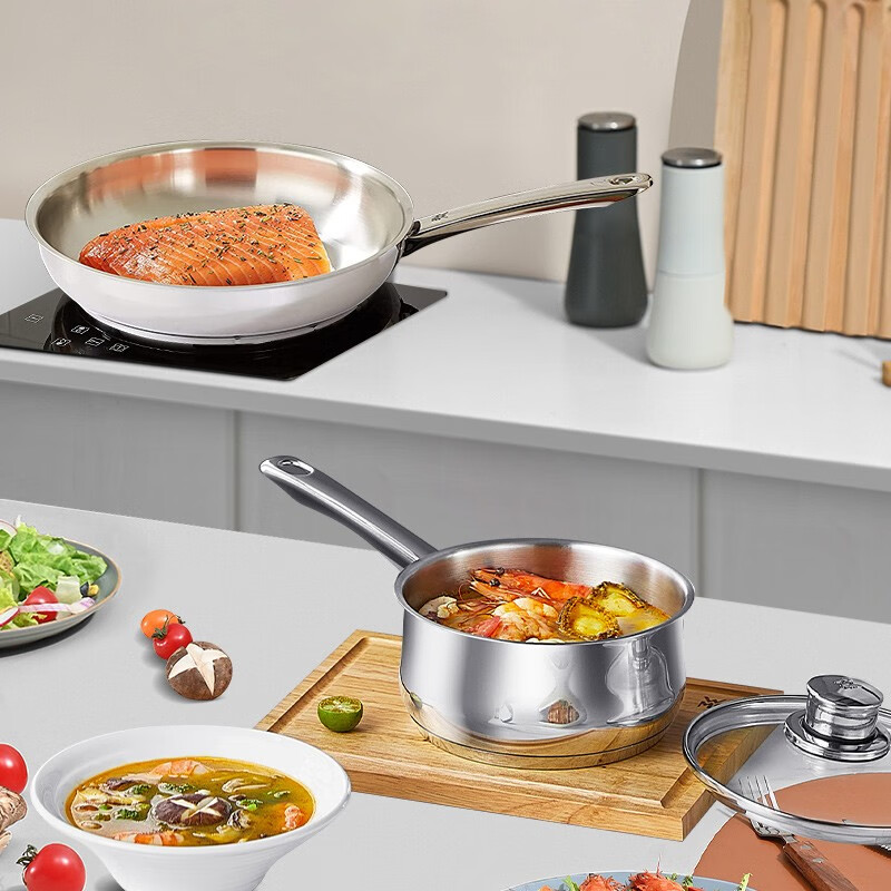WMF 不锈钢无涂层炒锅不粘陶瓷煎锅煎盘不锈钢奶锅辅食锅家用锅具三件套1669件已付款抢! -