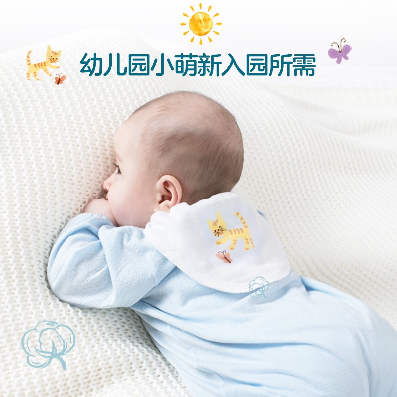 全棉时代婴儿隔汗巾纱布吸汗巾儿童宝宝纯棉垫背巾汗巾小熊+小鹿+小猫 3条/袋8238件已付款抢! -