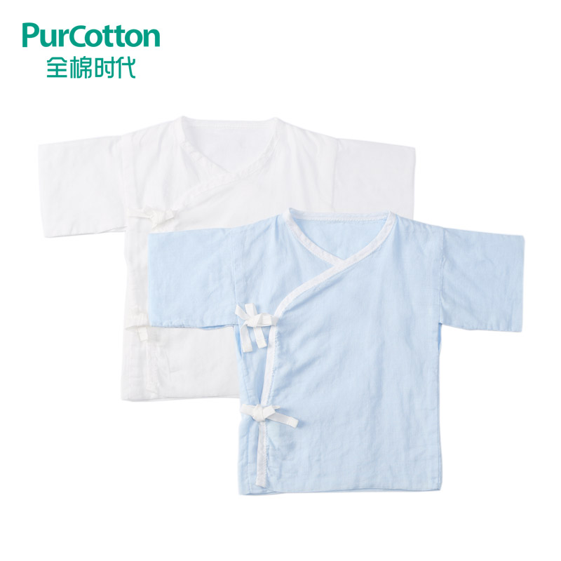 全棉时代 婴儿连体服新生儿衣服短款礼盒2件装0-3个月纯棉水洗纱布宝宝服 2件/盒 蓝色+白色-59/443900件已付款抢!