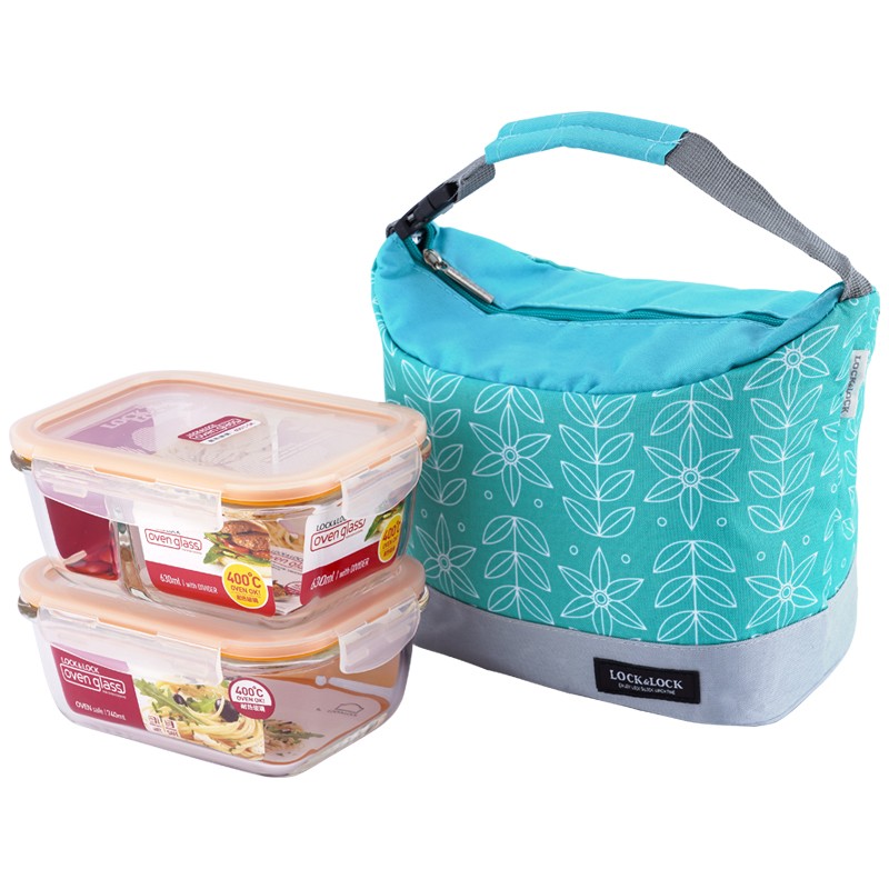乐扣乐扣(LOCK&LOCK) 保鲜盒 玻璃分格饭盒 微波炉便当盒套装 送便当包(740ml+630ml分格) LLG429S9111118件已付款抢! -